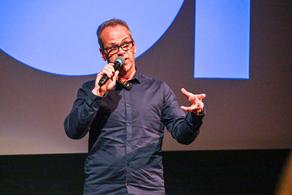 Anders Tangen er en av bakmennene for dokumentaren «Click the Link Below». – Filmen handler om det vi nå opplever hver dag og hvordan algoritmer og store selskap påvirker oss. Hvordan enkeltmennesker kommer inn og selger oss selvhjelpskurs med mer, sa Tangen under presentasjonen på Filmhøsten 2025.